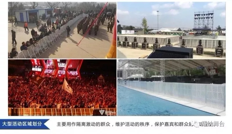 在人流量大的大型演出活动,我们怎么做到井然有序呢,保证人民群众的安全。活动演出时,一定不能忽略了隔离的设置。如果隔离通道搭建得当,就可以有效的达到分流的效果,避免因人流过多发生踩踏事故,演出结束时,也可有序离场,不至于乱哄哄。